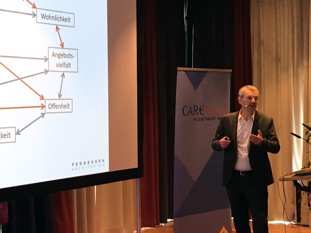 Wie gelingt die Integration stationärer Pflegebauten in bestehende Quartiere? Welche Angebote an die Nachbarschaft müssen diese Einrichtungen machen um akzeptiert zu werden? Welche städtebaulichen und architektonischen Lösungen sind passend? Über diese und weitere Fragen referierte Stefan Drees bei der diesjährigen 10. Auflage der AltenheimEXPO in Berlin.