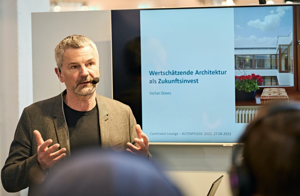 27.04.2022 | Im Rahmen der Leitmesse ALTENPFLEGE 2022 hielt Stefan Drees, Geschäftsführender Gesellschafter, zwei Vorträge: "Architektonische Parameter für ein zukunftsfähiges Quartiersdesign": Im Vortrag stellte Stefan Drees anhand von ganz unterschiedlichen Quartiers-Projekten architektonische Parameter vor, die Raum für ein selbstbestimmtes Leben eröffnen - für Bewohnerinnen und Bewohner wie Mitarbeitende, Angehörige und eine lebendige Nachbarschaft. Fazit: "Orte… -