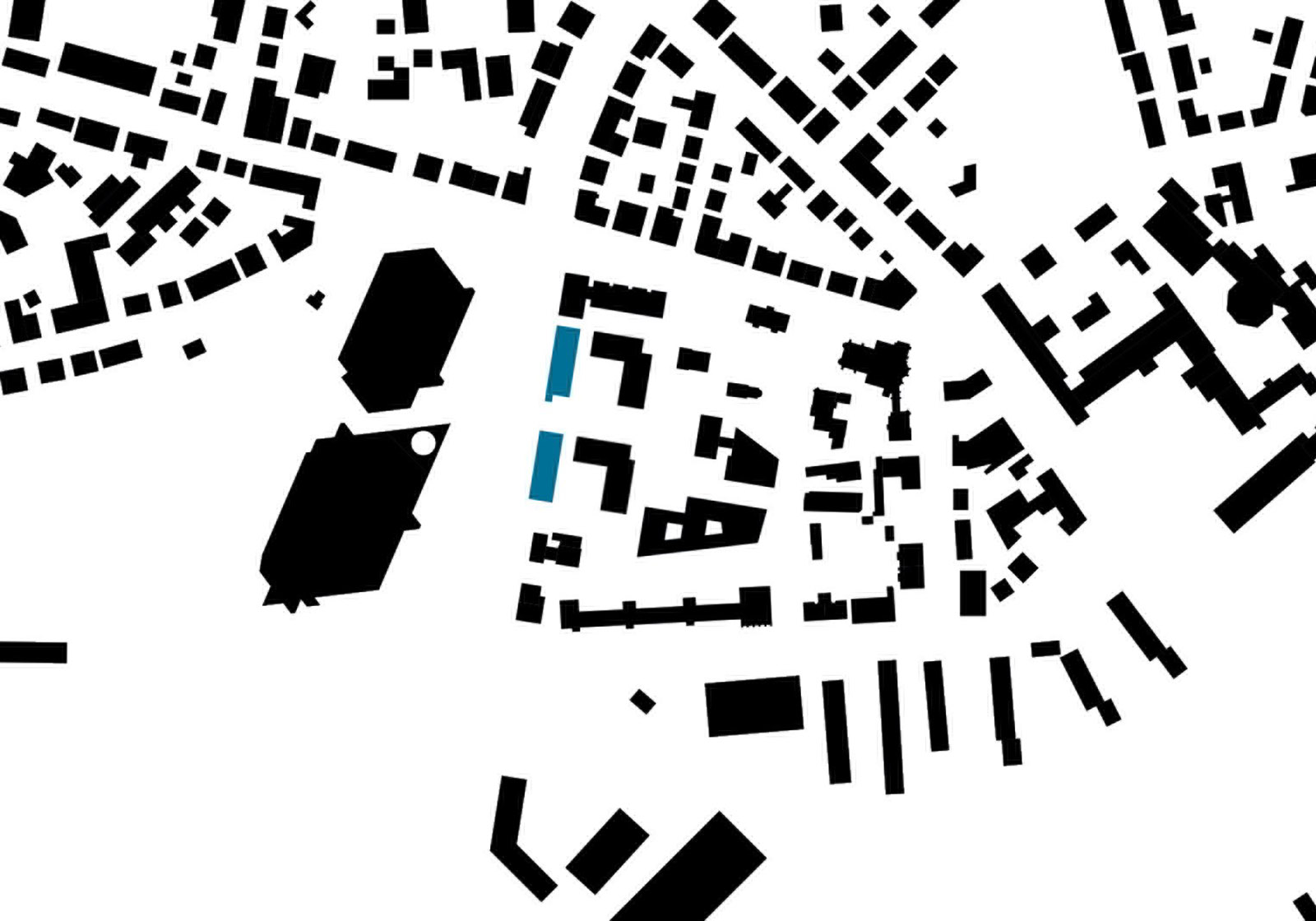 Das städtebauliche Konzept ergänzt die gewachsene städtebauliche Struktur mit neuen Elementen und schafft ein soziales Quartier mit eigener Identität. Charakteristisch ist die Abfolge von Plätzen und Höfen, die sich in Funktion und Atmosphäre situativ unterscheiden und Wahlmöglichkeiten zwischen Orten mit verschiedenen Atmosphären und Qualitäten bietet.
