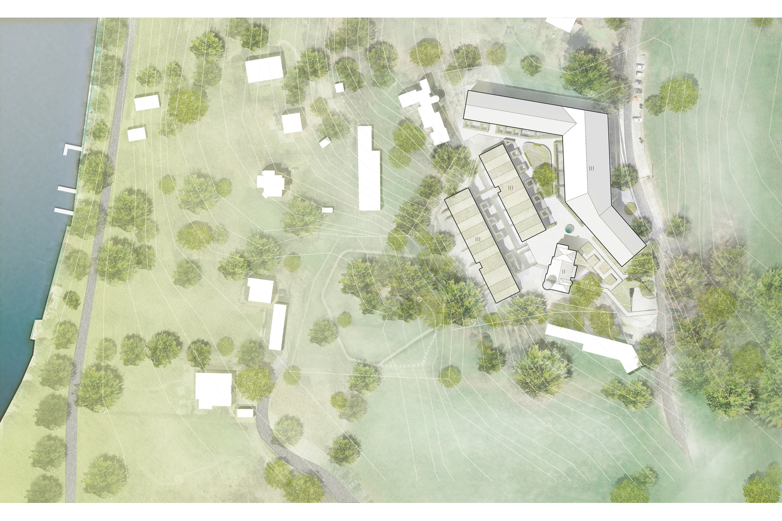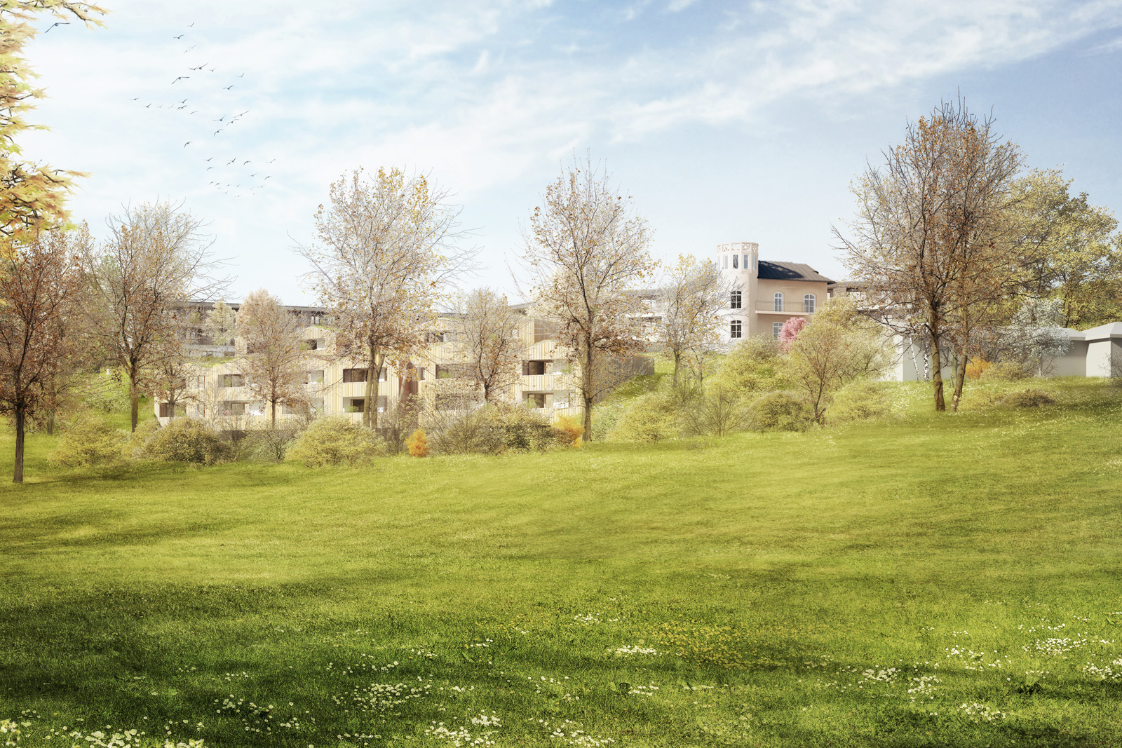 Mit dem „Waldschlösschen“ wird ein identitätsstiftendes Gebäude der ehemaligen Wiedemann-Klinik überdauern und in Zukunft wieder zum Wahrzeichen der neuen Wohnanlage werden. Als einziges Gebäude des künftigen Ensembles wird es in einer Lichtung freigestellt und sowohl vom See als auch vom Ort aus weithin sichtbar sein.