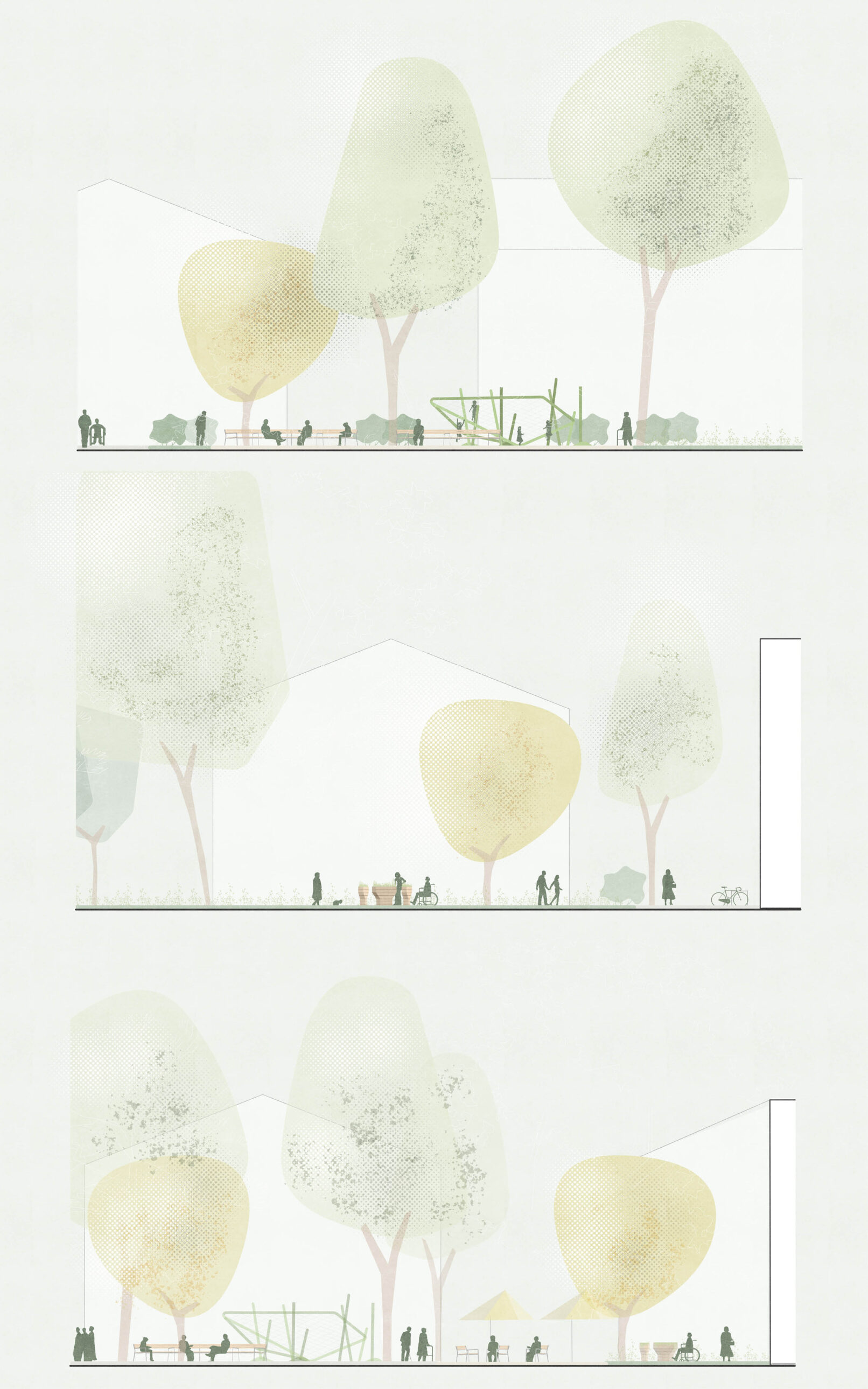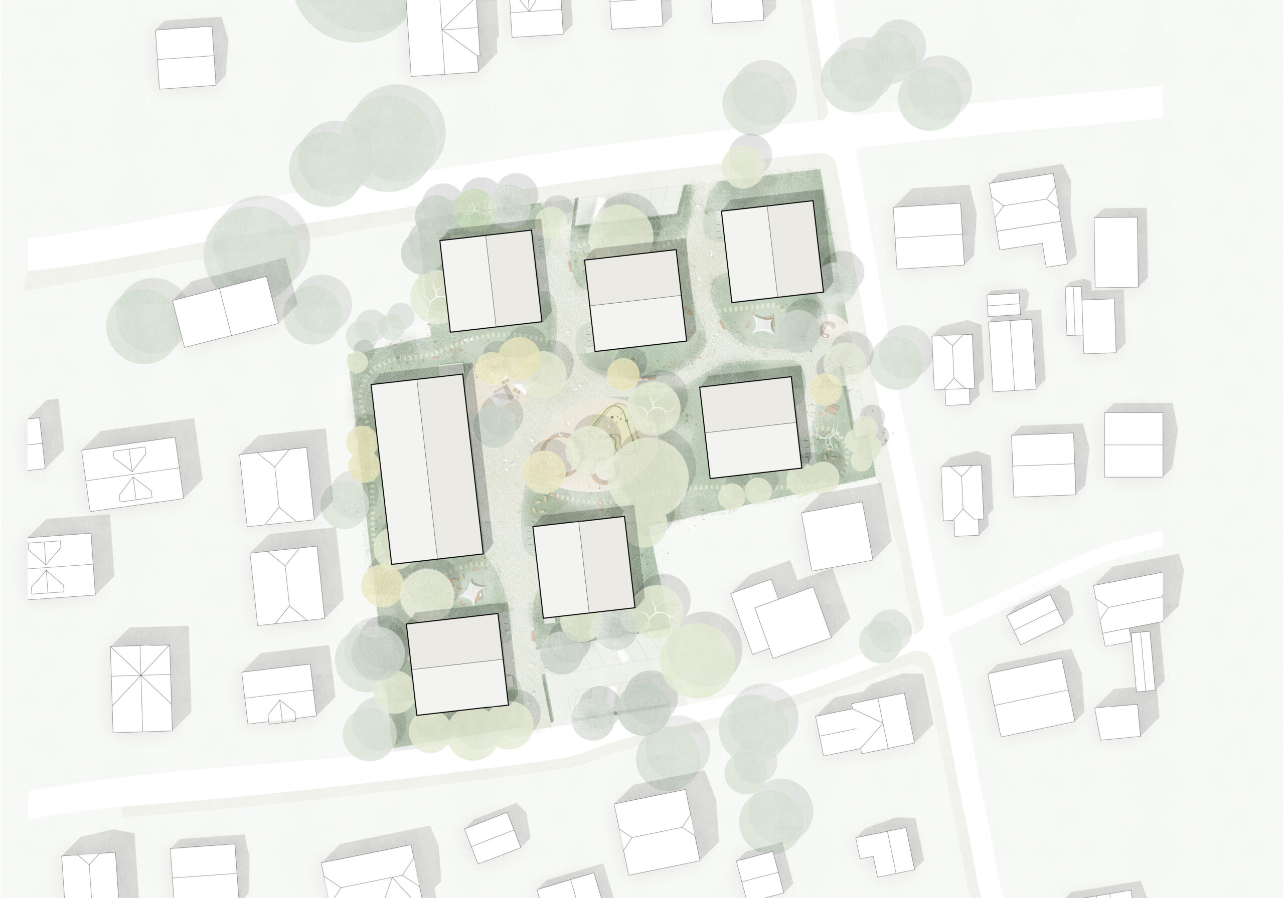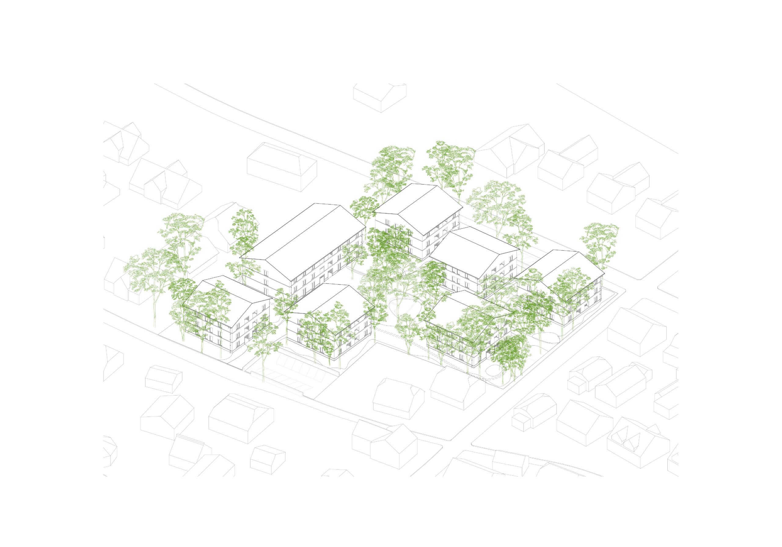 Der von uns geplante Campus ist als Ort für selbstbestimmtes Wohnen im Alter konzipiert und verfügt über einen zentralen Anlaufpunkt für ambulante Pflege sowie verschiedene Wohnangebote. Geplant sind Servicewohnungen für 1–2 Personen, die speziell auf die Bedürfnisse älterer Menschen zugeschnitten sind und im Hauptgebäude zwei große Wohngemeinschaften, die jeweils ein familiäres Wohnumfeld bieten. Im Erdgeschoss des Hauptgebäudes sind öffentlich zugängliche Einrichtungen vorgesehen, die soziale Begegnungen fördern und zugleich den Menschen aus der umliegenden Nachbarschaft offenstehen.