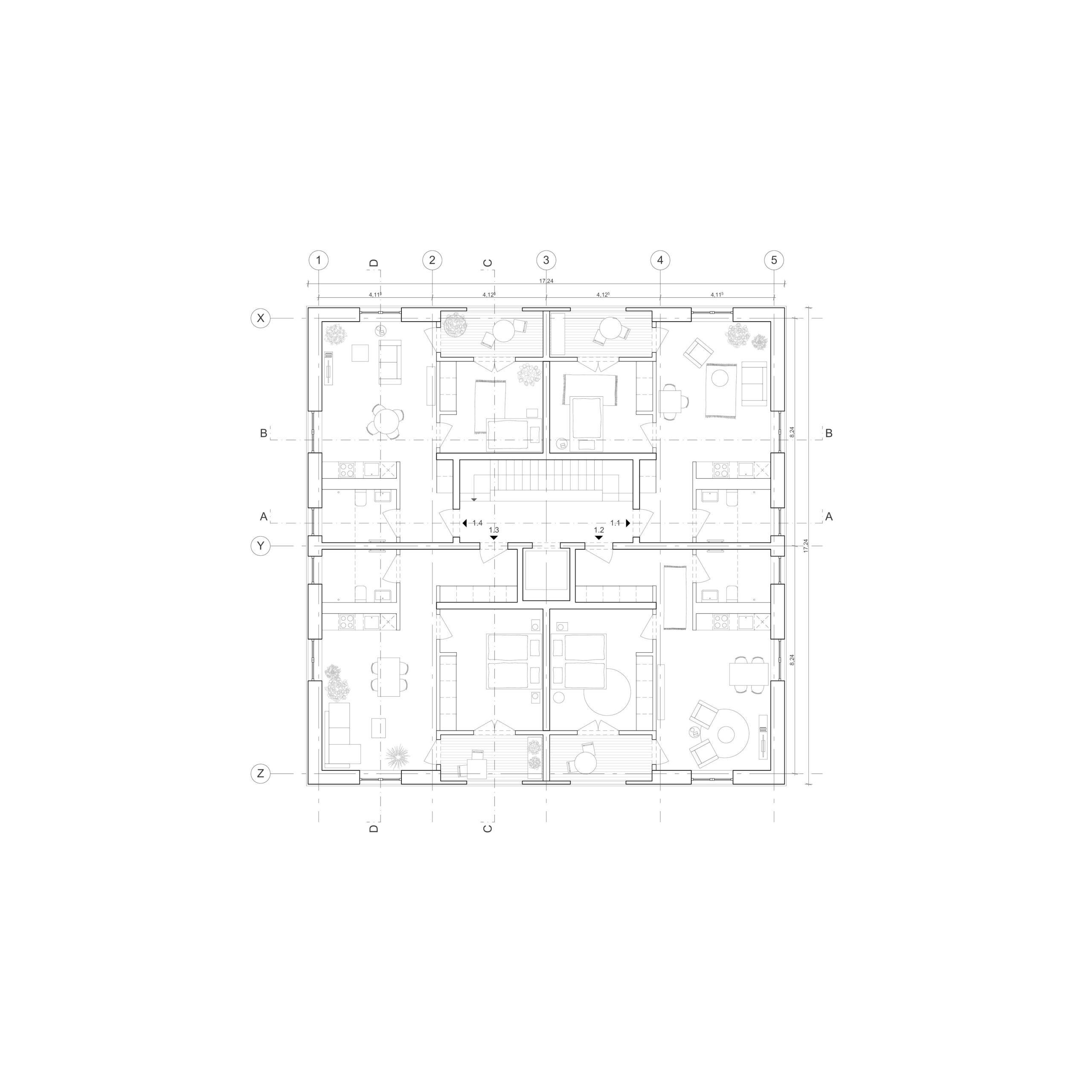 Dem Prinzip des „einfachen Bauens“ kommt im konstruktiven Ansatz eine zentrale Rolle zu. Die Grundrisse sind so konzipiert, dass technische Installationen und Leitungswege auf ein Minimum reduziert werden.